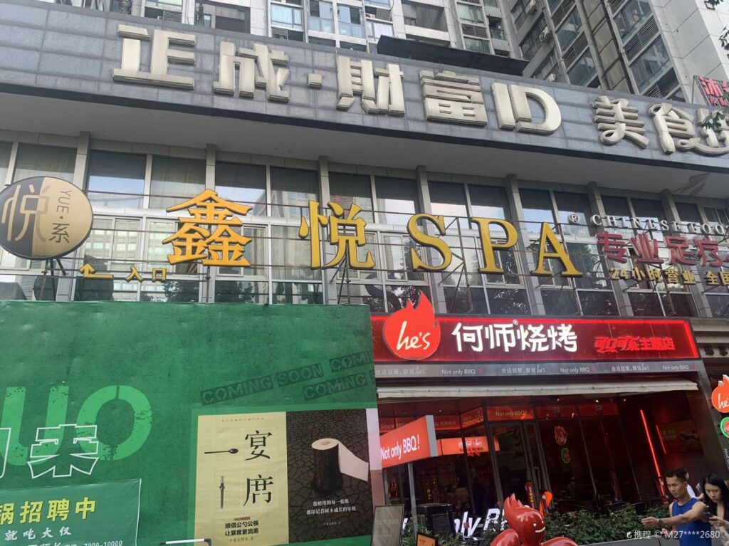 Chengdu Zhengcheng Wealth ID Food Street is located in Jinjiang District, Chengdu City. It boasts a rich variety of local snacks such as stinky tofu, Mao Xue Wang, barbecue, and oysters.