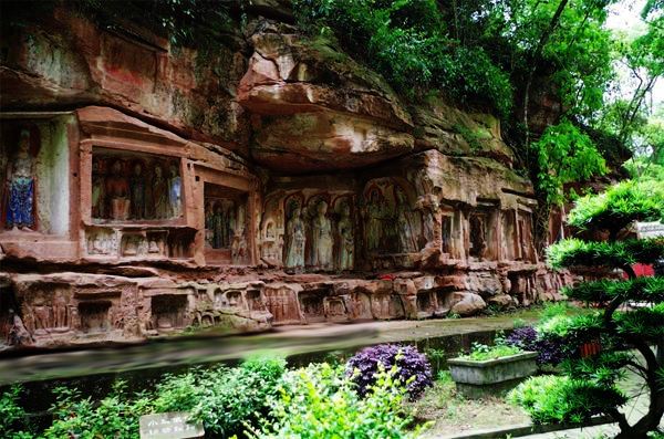 Empress Wu Zetian, in the sixth year of Yongchang (AD 689), commissioned the carving of 92 niches with 777 Buddhist statues at Fei Xian Ge, making it one of the few places in Sichuan where the Buddhist rock carvings from the Tang Dynasty are still preserved.