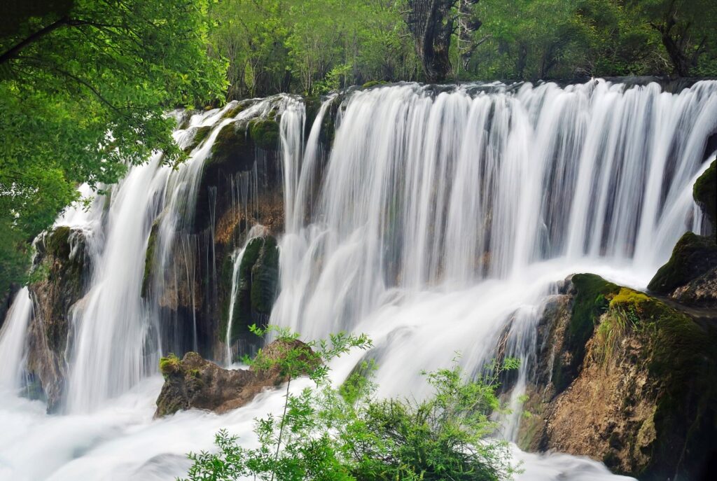 Shuzheng Waterfall is the first waterfall visitors see when entering the valley. It is also the smallest among the four major waterfalls in the valley. The upstream lake water rushes down along the shallows and is blocked by the raised ring-shaped travertine steps, forming several waterfall surfaces that resemble giant lotus petals. Seen from afar, it is like a water lily in the vast ocean that never withers, presenting a magnificent view.