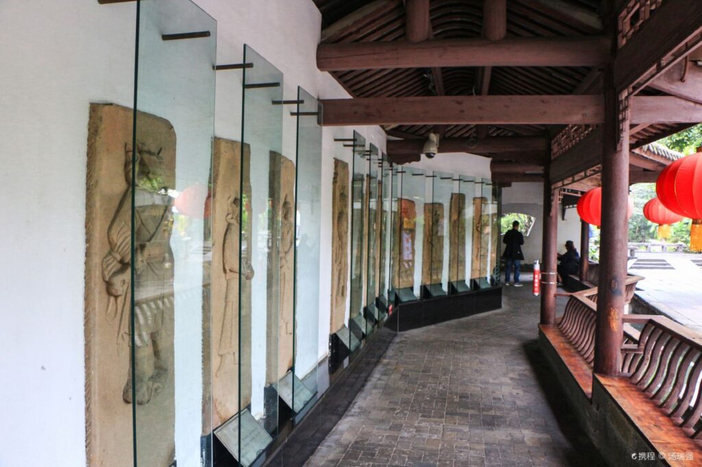 The Stone Carving Corridor of the Song Dynasty is located within the Jinli Scenic Area in Chengdu, near the south exit of Wuhou Shrine. It is a corridor that has been redecorated for protection purposes. Inside, there are many stone carvings from the Song Dynasty covered by glass enclosures.