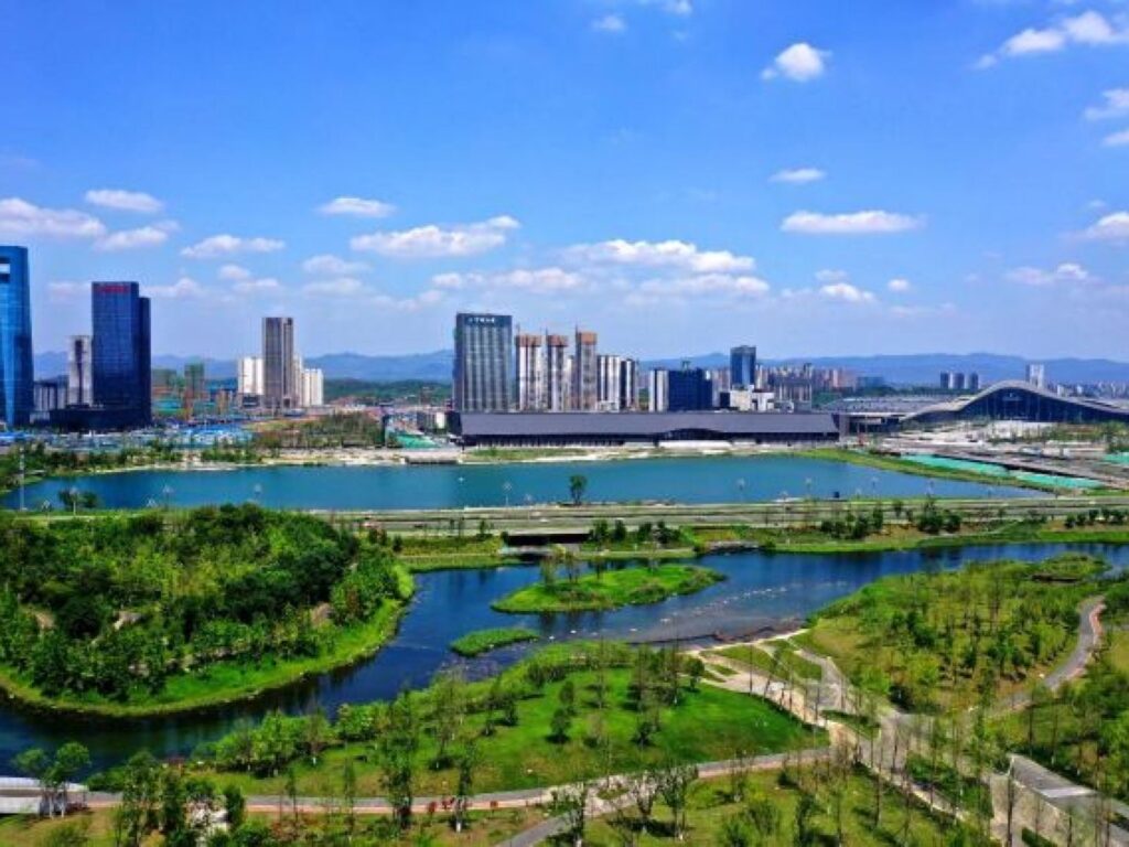 Tianfu International Convention Center is an integral part of the Western China International Expo City, commonly referred to as ‘West Expo City,’ and is located in Tianfu New District, Chengdu, Sichuan Province. Covering an area of approximately 165 acres, the center boasts a total construction area of around 330,000 square meters. The development includes a convention center, hotel, commercial, and office spaces. It features one large conference hall of about 6,600 square meters and one multifunctional hall of approximately 4,600 square meters, in addition to over 40 medium and small-sized meeting rooms. The center is not open for individual visits.