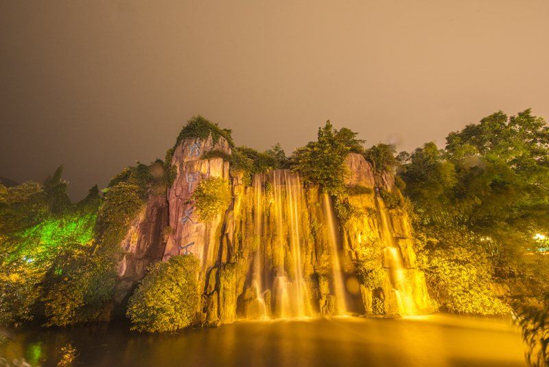 Xiujia Waterfall is one of the main structures in the Welcome Square of Emei Mountain. The phrase ‘Xiujia Tianxia’ encapsulates the assertion that ‘Emei’s beauty is unparalleled in the world,’ with the character ‘Jia’ highlighting the status of Emei’s scenic splendor and the spirit of its people. Additionally, ‘Xiujia Tianxia’ corresponds with the ‘Famous Mountains of the World’ archway, providing commentary and supplement to the characteristics of ‘Famous Mountains of the World.’ Standing in front of the waterfall, one can witness the torrential falls cascading from the sky, a white ribbon hanging on the stone wall, with splashing droplets creating a mist in the air, and rainbows faintly visible under the sunlight. In the river, waves roll and the sound is thunderous.
