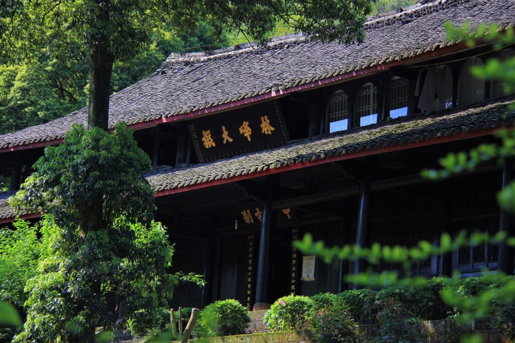 One kilometer away from Shengshui Chan Courtyard, hidden in the lush forest is a temple, namely Zhongfeng Temple. During the Jin Dynasty, Taoism prevailed on Mount Emei. This place was Qianming Taoist Temple, and Taoists from all over the country gathered here. At the end of the Jin Dynasty, Taoism declined while Buddhism thrived. The Taoists in the temple invited Master Mingguo of Buddhism to live in the temple and changed the Taoist temple into Zhongfeng Temple.
